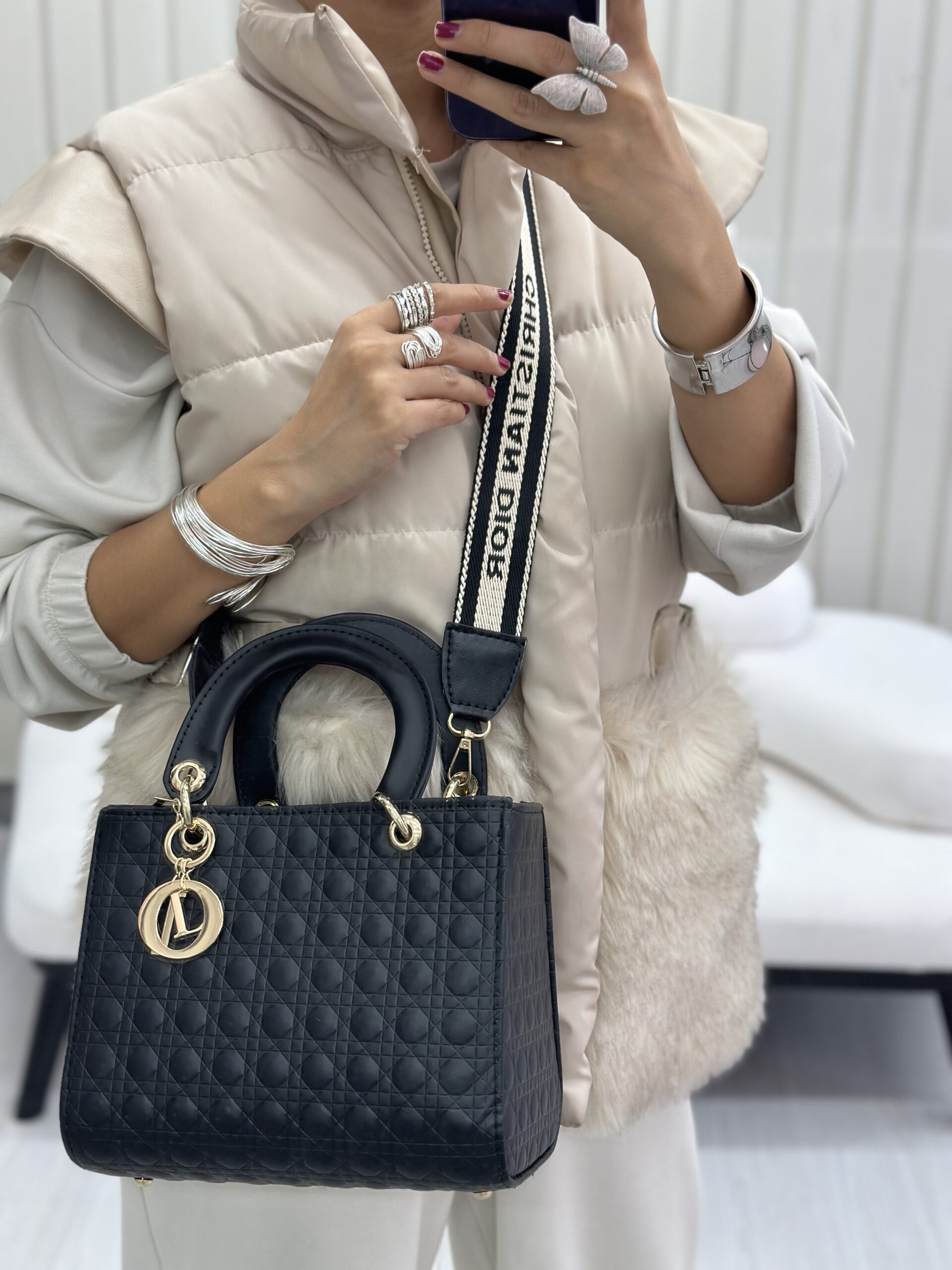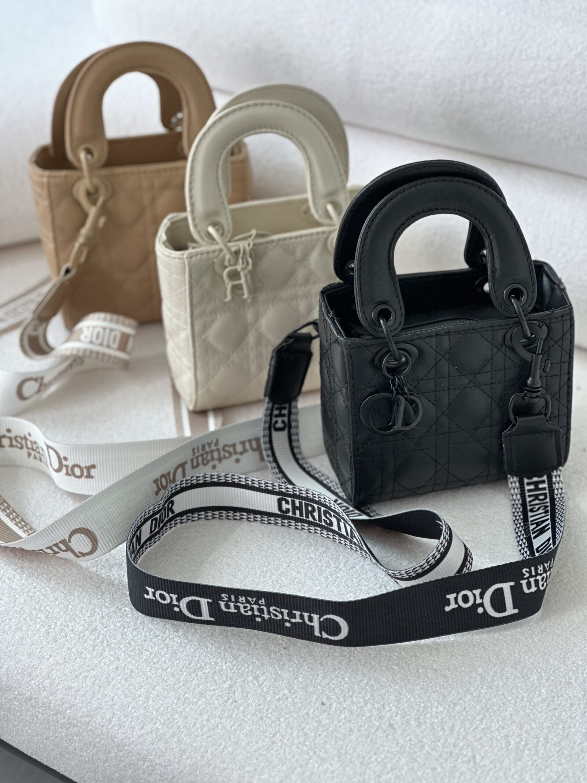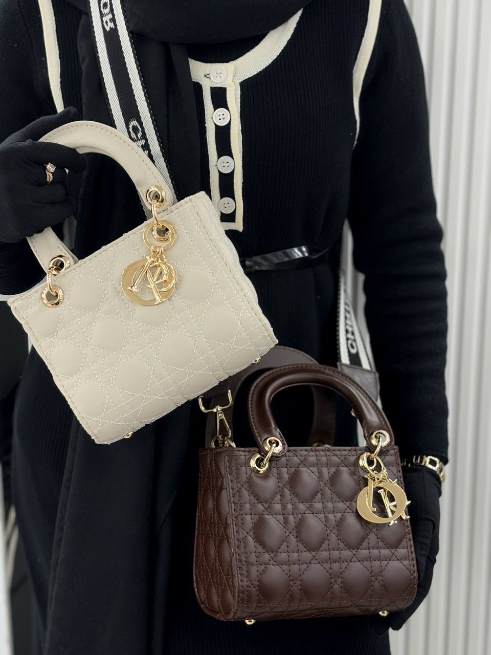 نسخهی مینی لیدی دیور، با بند زنجیری و اندازهی جمعوجور، در سالهای اخیر به یکی از محبوبترین انتخابها برای استایل شب و مهمانی تبدیل شده است. ترکیب اندازهی کوچک با طراحی پرجزئیات، دلیل اصلی فروش بالای این مدل است.