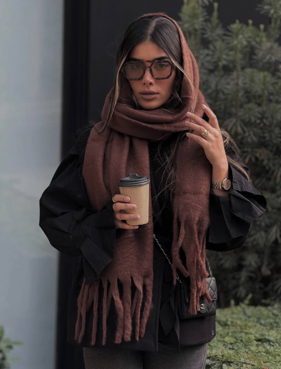 بیگ اسکارف قهوه ای پشمی کد ۴۰۰