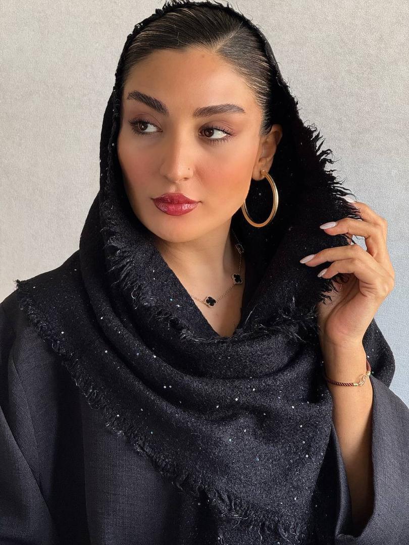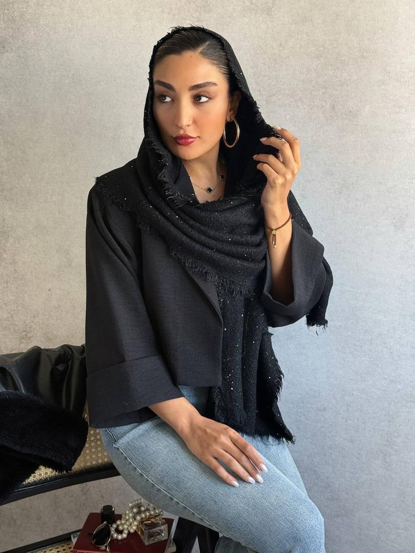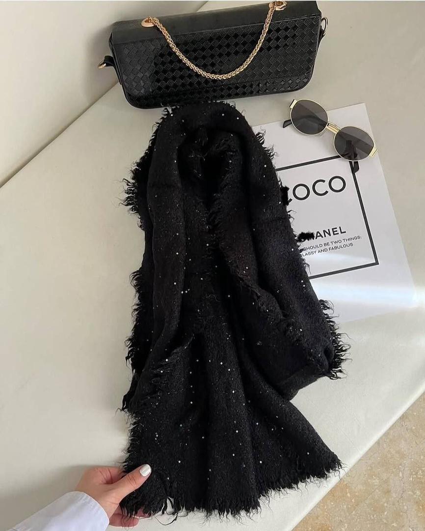 خرید محصول شال مشکی بوکله پولکی کد 400