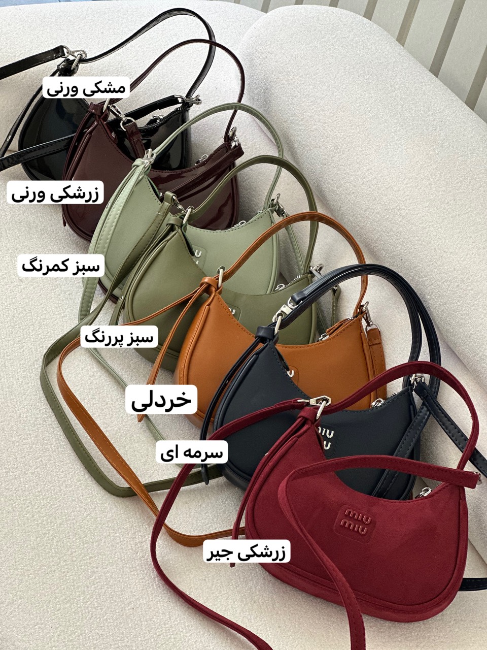 | رنگبندی | مشکی ورنی, زرشکی ورنی, سبز کمرنگ, سبز پررنگ, خردلی, سرمه ای, زرشکی جیر, مشکی مات |